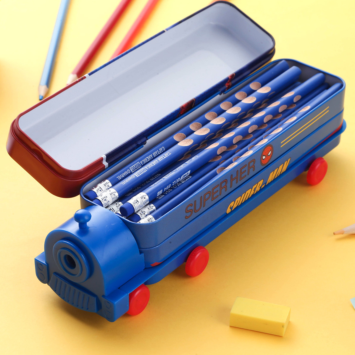 创意文具盒火车头削笔器铁笔盒男女小学生双层大容量笔盒