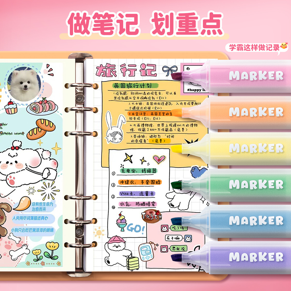 荧光笔多巴胺高颜值荧光笔记号笔彩色划重点学生用手抄报专用笔