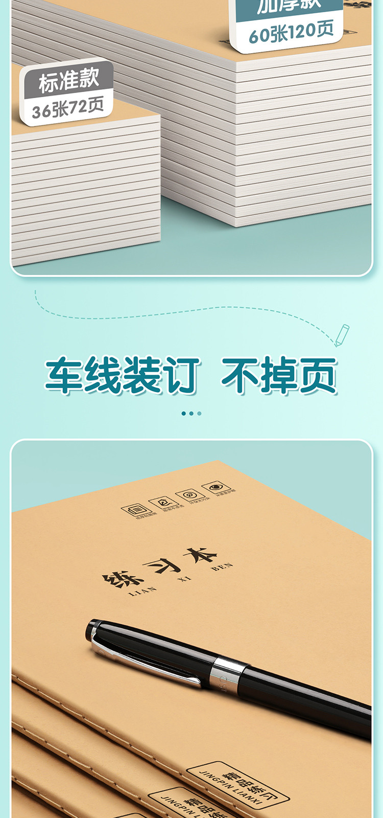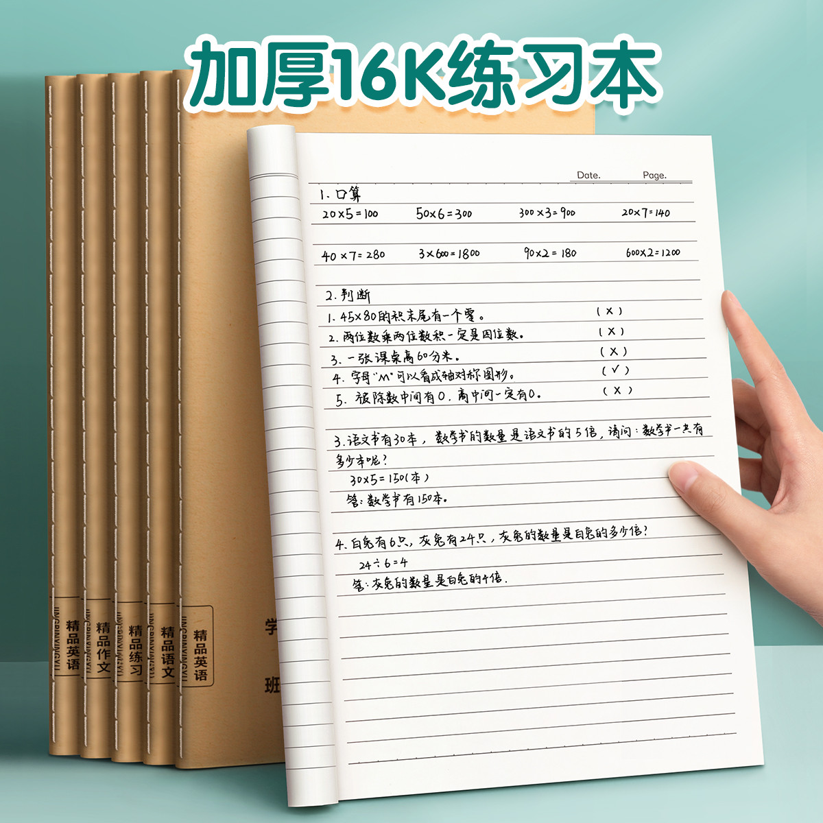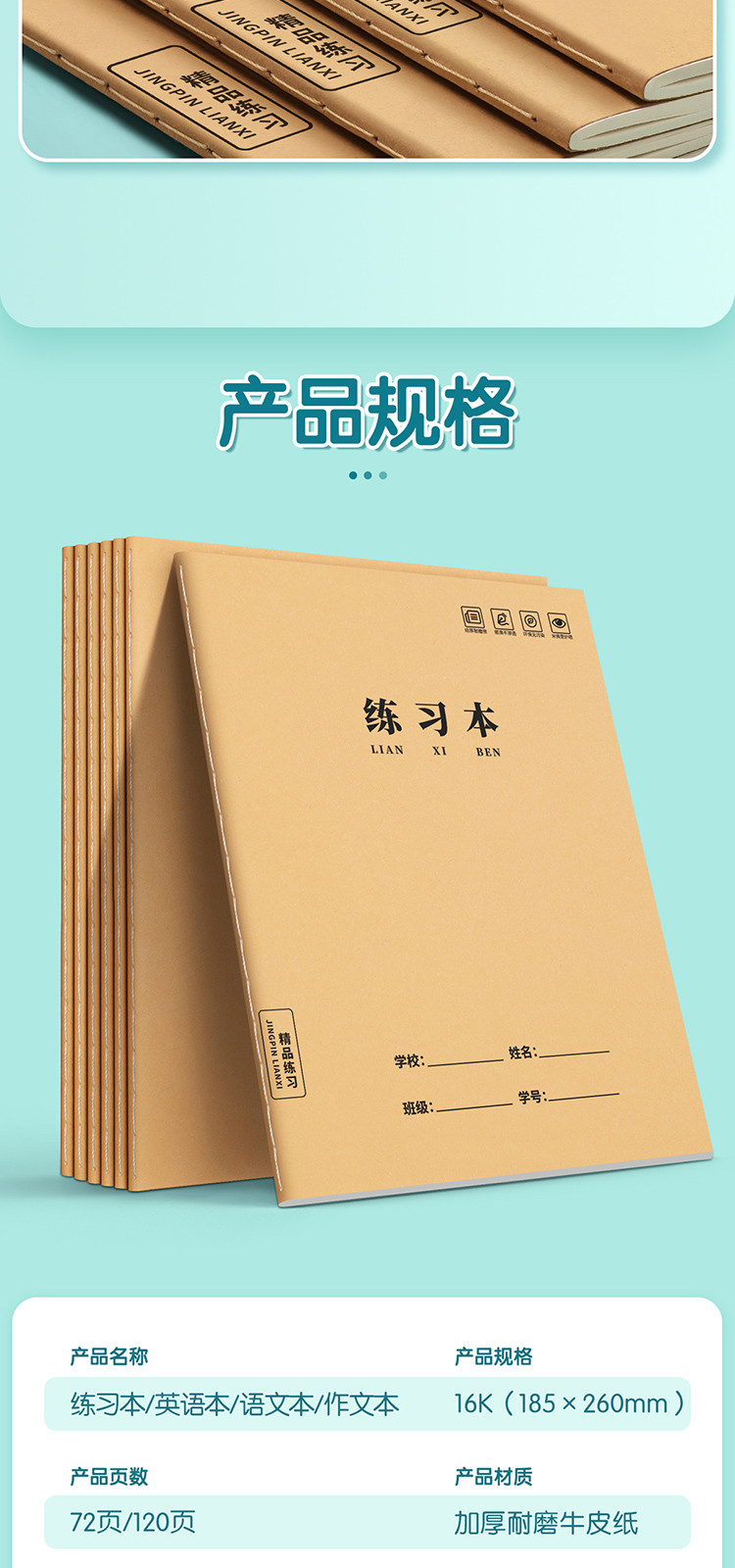 16K练习本加厚牛皮纸作业本子小学生初高中生作文语文数学横线簿