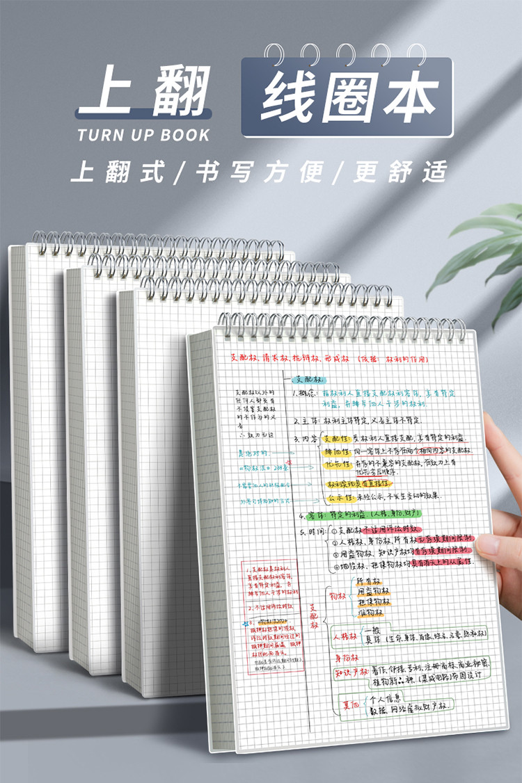 笔记本上翻线圈本格子本加厚大学生考研办公用记录横线练习本